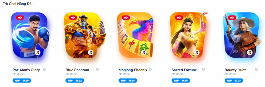 Sau khi đăng nhập, vào mục “Trò chơi” → “Slot” → “Nextspin” để chọn 1 trong 5 game hot phía trên